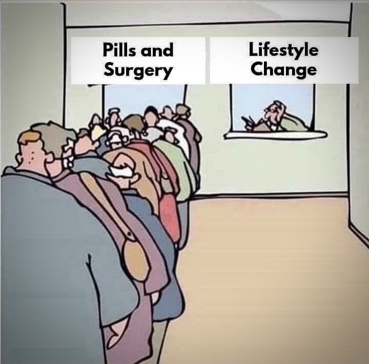 This well known cartoon is pretty much universally heralded but also ignored…by the same people. This because often one feels it’s too late for them. Even if you need surgery it’s never too late but we won’t bother beating that drum again here.